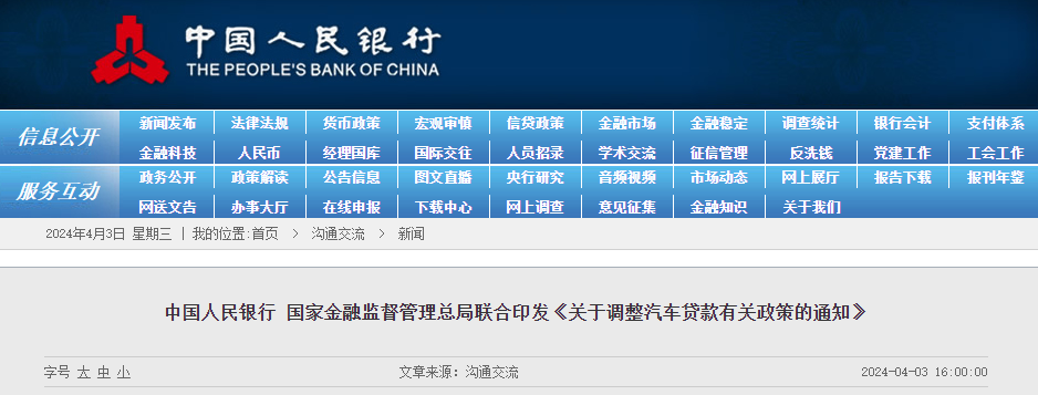 中國人民銀行等兩部門:鼓勵金融機構適當減免汽車以舊換新提前結清貸款產生的違約金