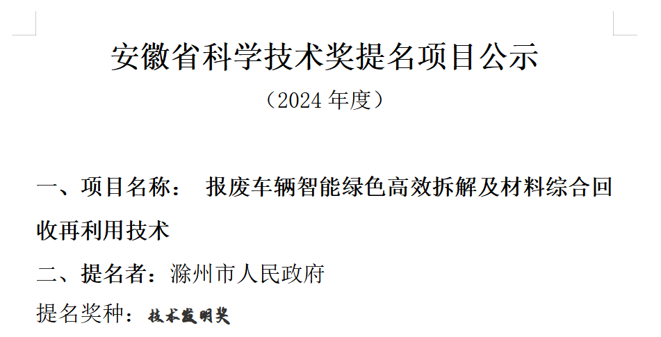 2024年度安徽省科學(xué)技術(shù)獎提名項目公示材料