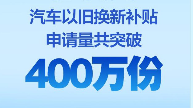 汽車以舊換新補(bǔ)貼申請量共突破400萬份