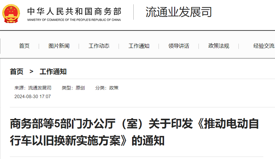 商務(wù)部等部門:加大電動(dòng)自行車以舊換新惠民支持力度(附一圖看懂)