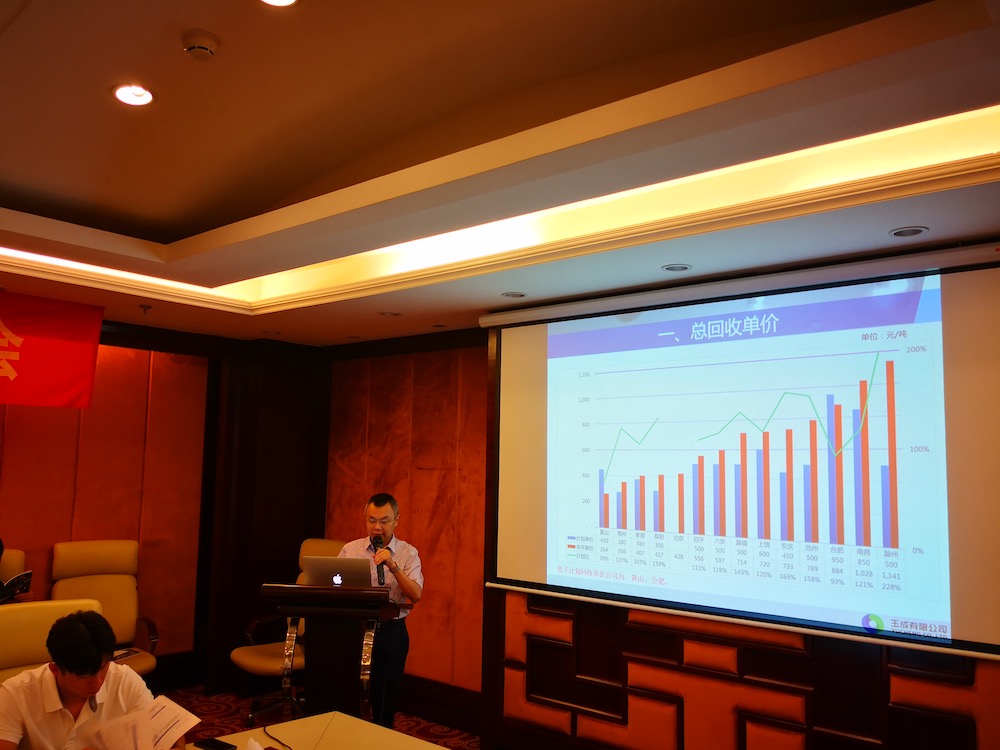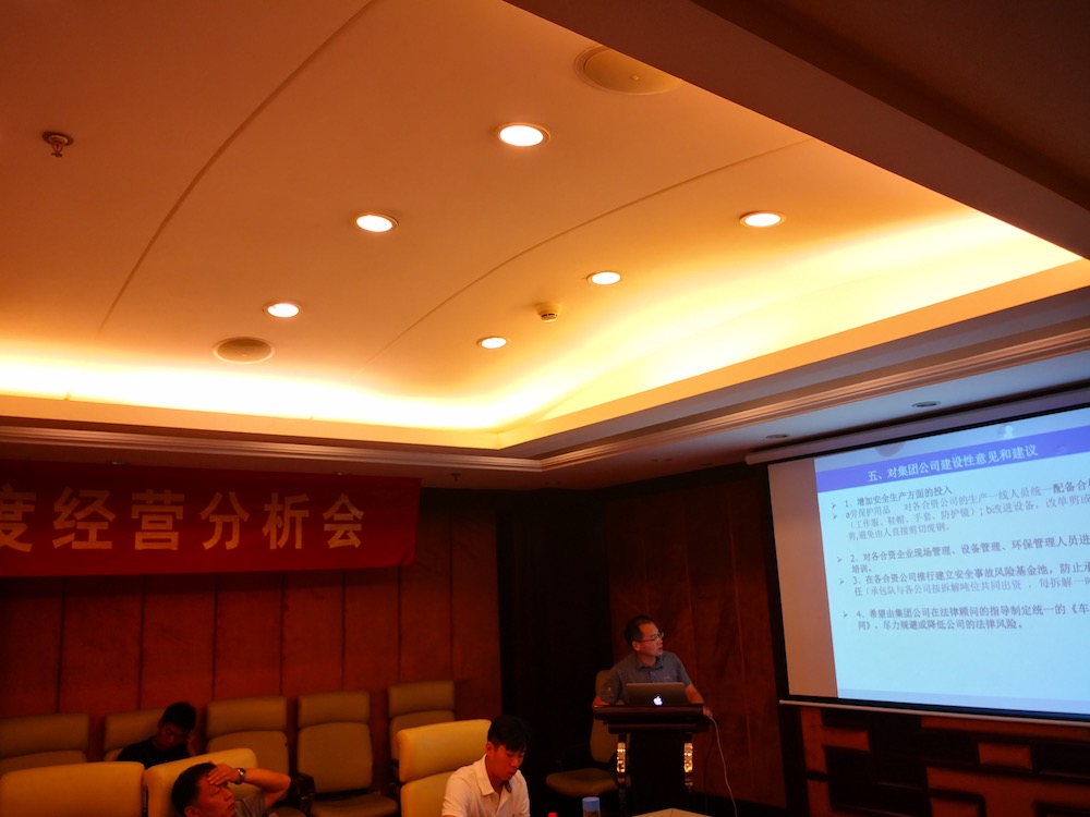 7月21-22日,玉成有限公司2018年上半年度經(jīng)營分析會在合肥外經(jīng)戴維斯酒店召開,報廢車業(yè)務(wù)板塊合資公司董事長、總經(jīng)理,集團本部骨干員工共計近40人參加了會議,會議分別由副總裁何學(xué)海和戴子海主持。