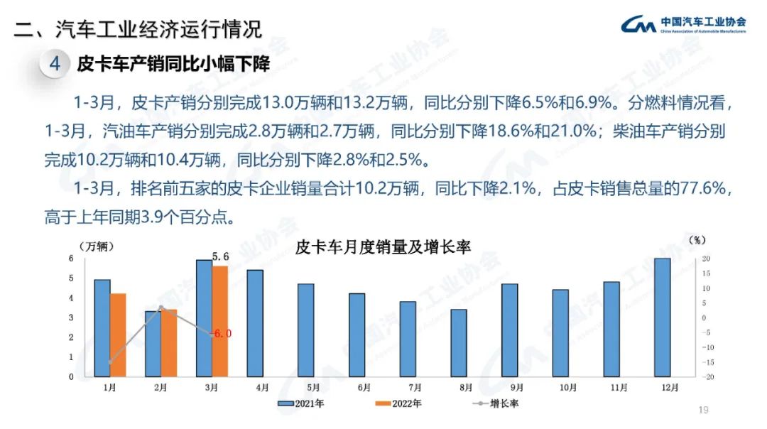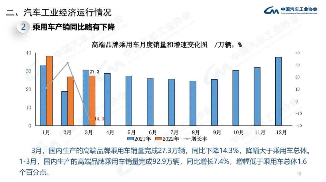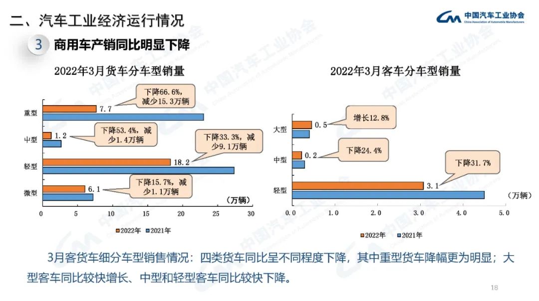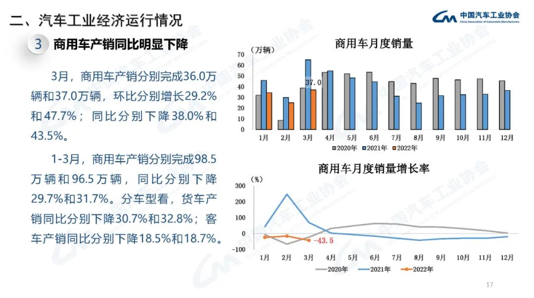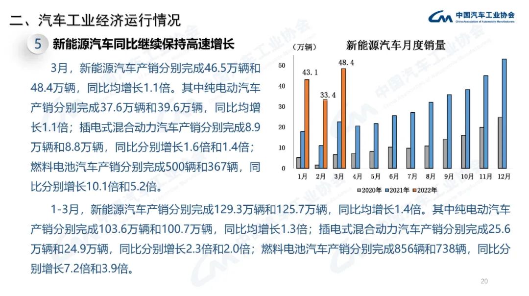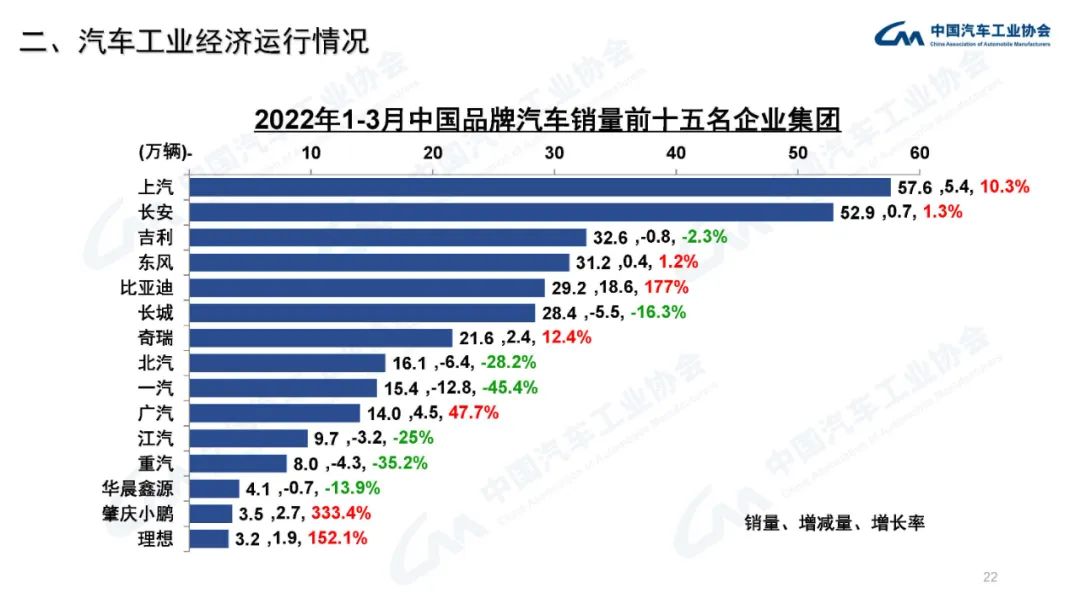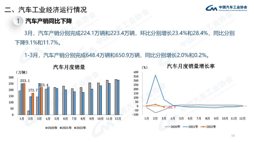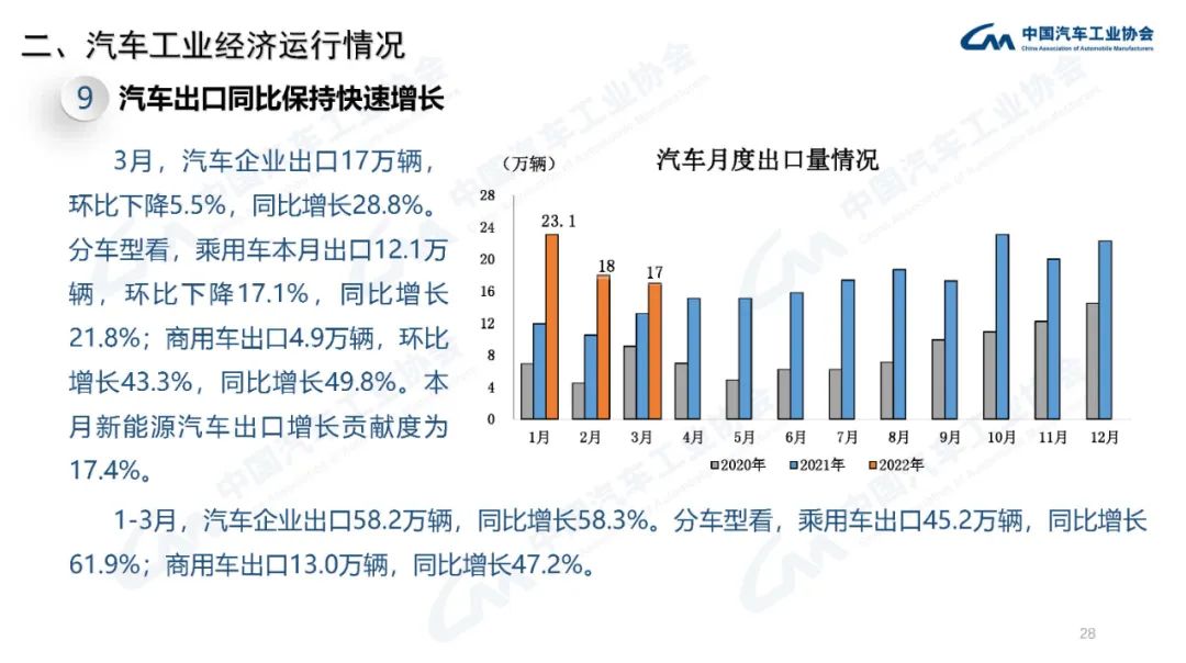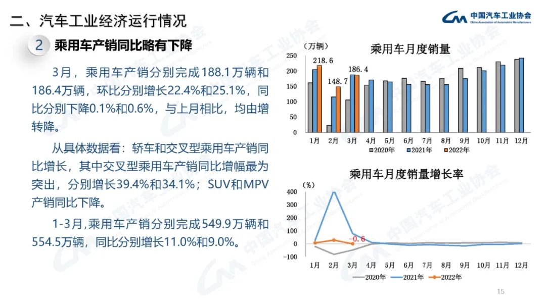 2022年3月,國內(nèi)疫情近期多發(fā),市場主體困難明顯增加,經(jīng)濟(jì)循環(huán)暢通遇到一些制約,新的下行壓力進(jìn)一步加大。從汽車供給端看,芯片短缺的情況沒有得到明顯緩解,動力電池原材料價(jià)格快速上漲,進(jìn)一步推高企業(yè)產(chǎn)品制造成本,汽車企業(yè)生產(chǎn)經(jīng)營活動受到一定影響,總體形勢不及預(yù)期;從汽車消費(fèi)端看,消費(fèi)動能明顯不足,與同期相比,呈現(xiàn)一定幅度下降。