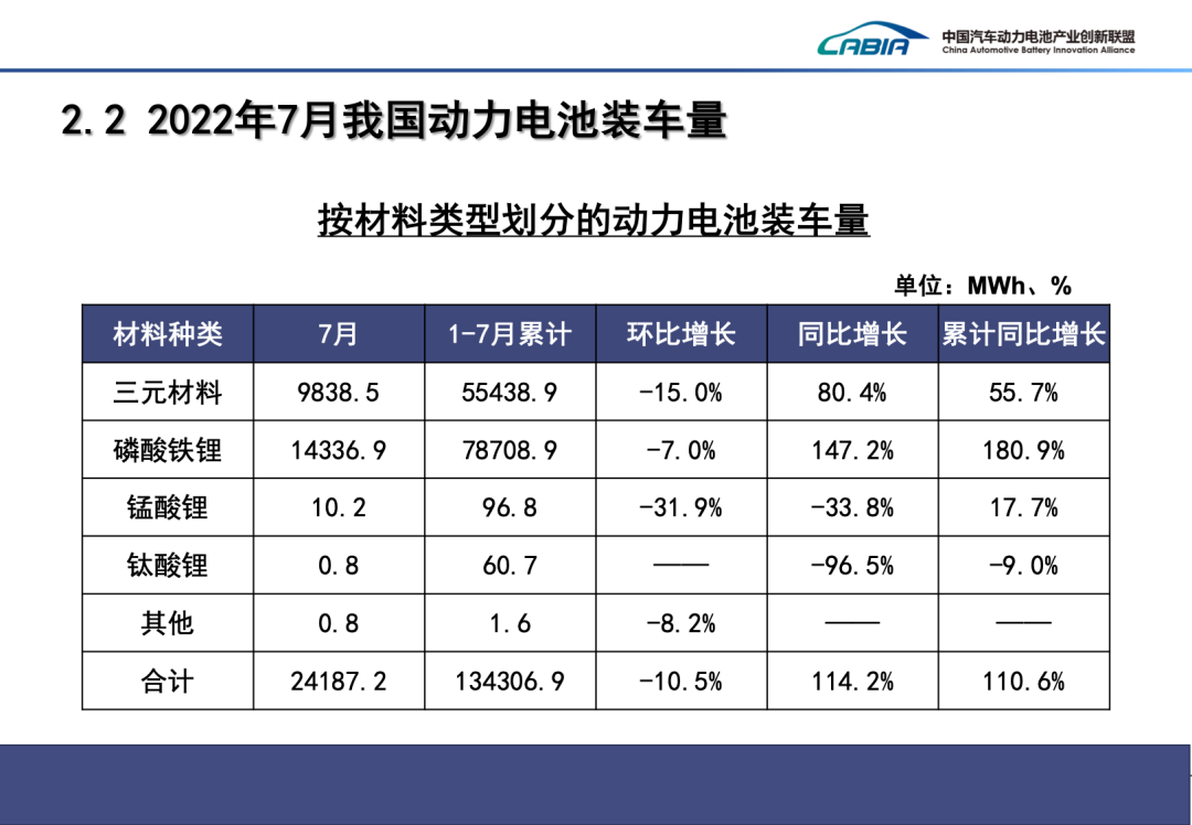 2022年7月動力電池月度數(shù)據(jù)發(fā)布如下。