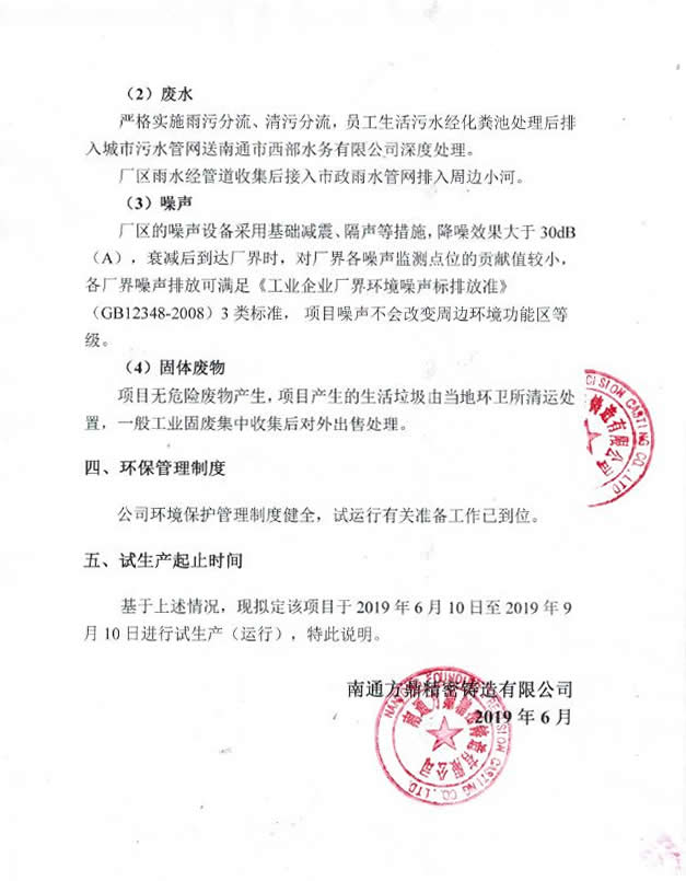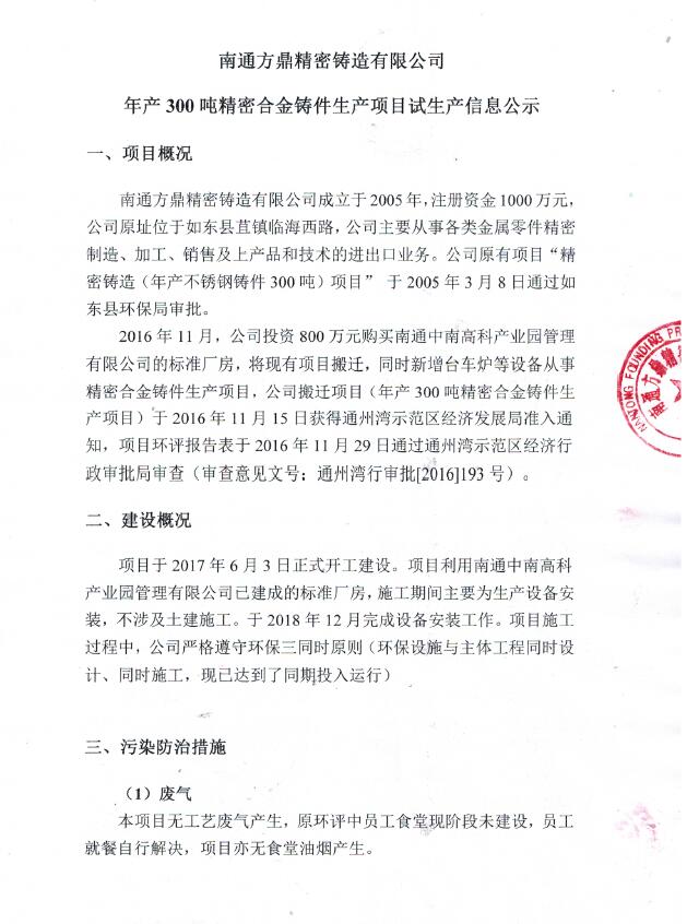 年產(chǎn)300噸精密合金鑄件生產(chǎn)項目試生產(chǎn)信息公示